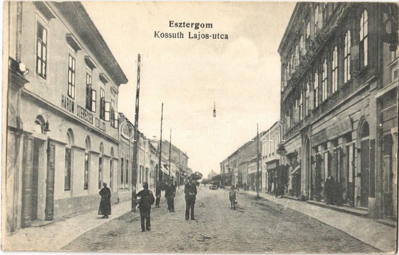 Esztergom, Kossuth Lajos utca, Három Szerecsen Szálloda, üzletek https://www.darabanth.com/de/32-Gross-Auktion/32.1/Ansichtskarten/Ungarn~13725/Esztergom-Kossuth-Lajos-utca-Harom-Szerecsen-Szalloda-uzletek~II2043532