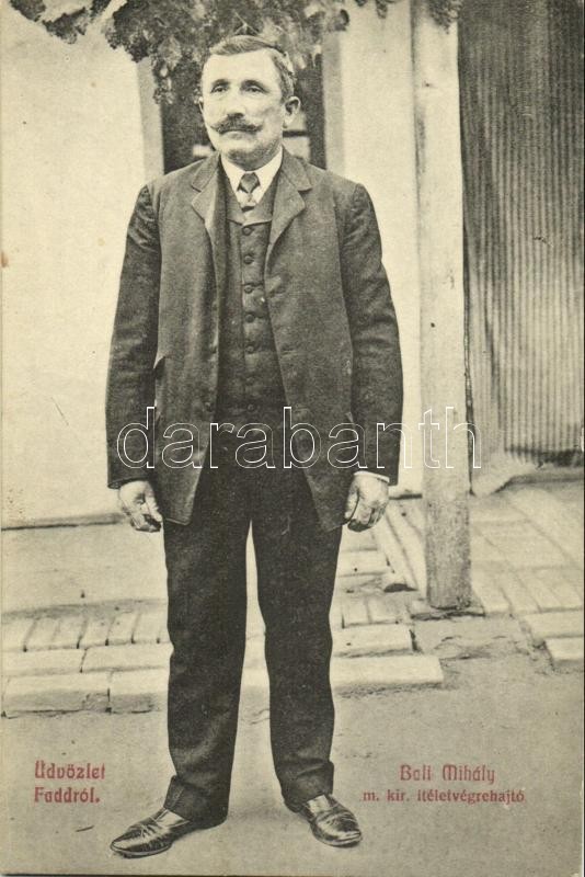 Beschreibung: Fadd, Bali Mihály m. kir. ítéletvégrehajtó. Kiadja Fadd és Vidéke fogyasztási és értékesítő szövetkezet / Hungarian executioner