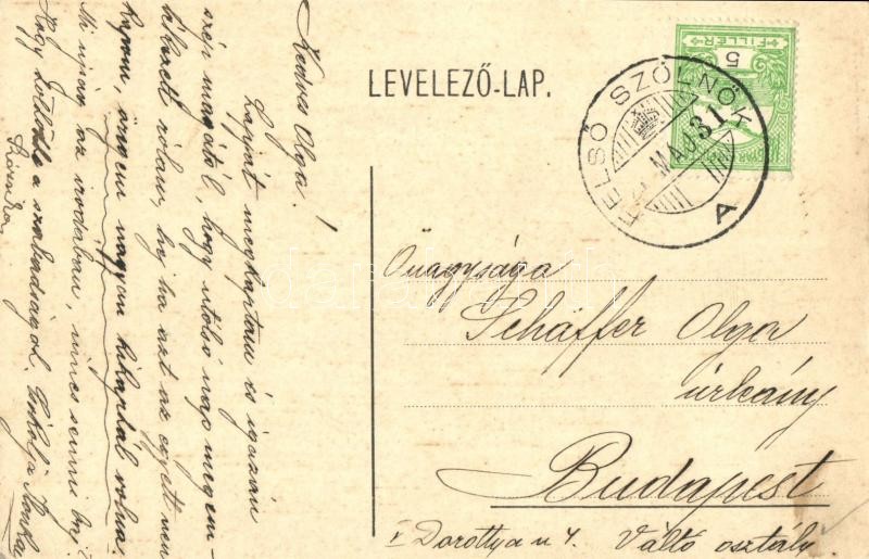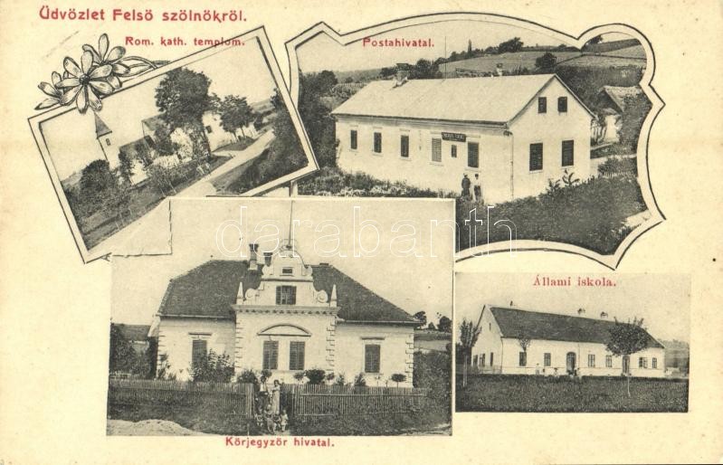 Beschreibung: Felsőszölnök, Római katolikus templom, postahivatal, állami iskola, Körjegyző hivatal. Art Nouveau, floral