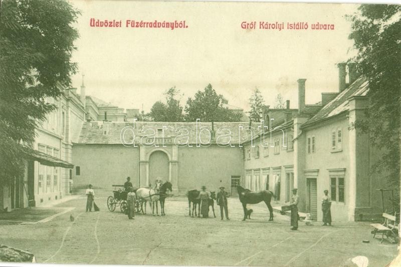Füzérradvány, Radvány; Gróf Károlyi istálló udvara, lovaskocsi (EM) https://www.darabanth.com/de/32-Gross-Auktion/32.1/Ansichtskarten/Ungarn~13725/Fuzerradvany-Radvany-Grof-Karolyi-istallo-udvara-lovaskocsi-EM~II2026575