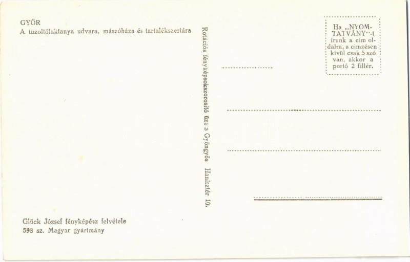 Győr, tűzoltó laktanya udvara, mászóháza és tartalékszertára. Glück Jó... https://www.darabanth.com/de/32-Gross-Auktion/32.1/Ansichtskarten/Ungarn~13725/Gyor-tuzolto-laktanya-udvara-maszohaza-es-tartalekszertara-Gluck-Jozsef-fenykepesz-~II2046139