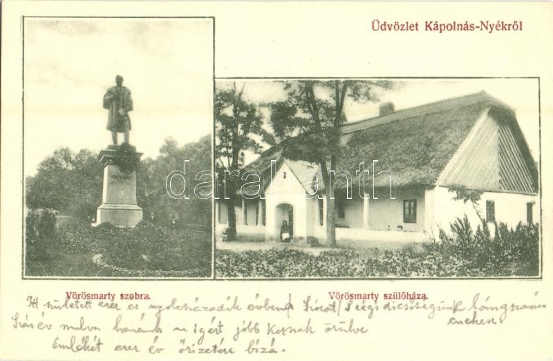 Kápolnásnyék, Vörösmarty szobra és szülőháza https://www.darabanth.com/de/32-Gross-Auktion/32.1/Ansichtskarten/Ungarn~13725/Kapolnasnyek-Vorosmarty-szobra-es-szulohaza~II2025321