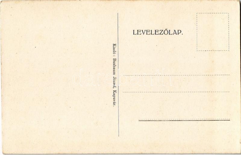 Beschreibung: Kapuvár, Szent István utca, M. kir. Adóhivatal. Buxbaum József kiadása