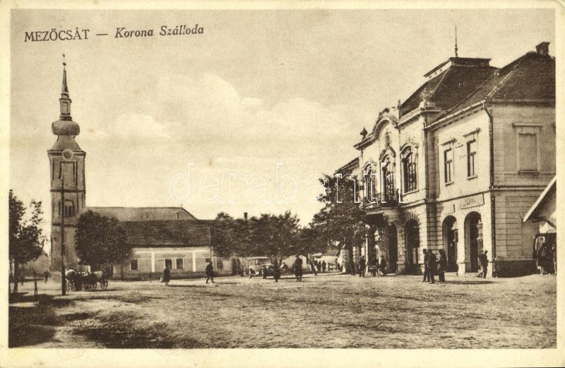 Mezőcsát, Korona szálloda, templom. Kerékgyártó István kiadása https://www.darabanth.com/de/32-Gross-Auktion/32.1/Ansichtskarten/Ungarn~13725/Mezocsat-Korona-szalloda-templom-Kerekgyarto-Istvan-kiadasa~II2035488