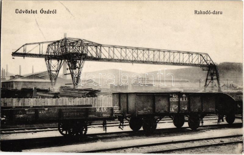 Ózd, Rakodó-daru, Ipari vasút MÁV 151303 és 124569 vagonokkal. Mácsay ... https://www.darabanth.com/de/32-Gross-Auktion/32.1/Ansichtskarten/Ungarn~13725/Ozd-Rakodo-daru-Ipari-vasut-MAV-151303-es-124569-vagonokkal-Macsay-Antal-kiadasa-vagott-~II1948904
