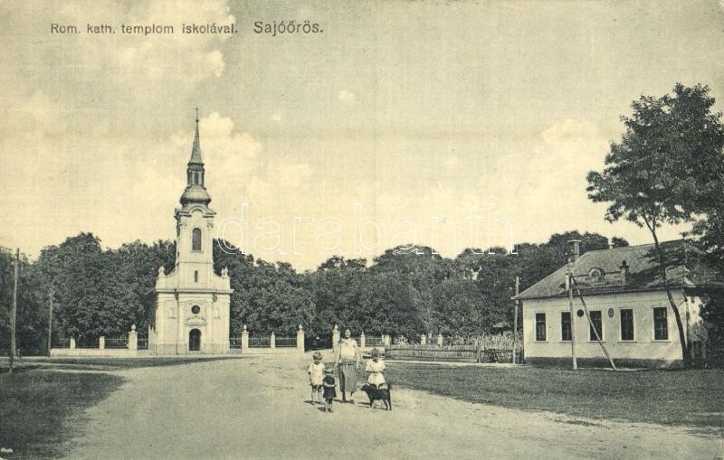 Sajóörös, Római katolikus templom és iskola https://www.darabanth.com/de/32-Gross-Auktion/32.1/Ansichtskarten/Ungarn~13725/Sajooros-Romai-katolikus-templom-es-iskola~II2043556