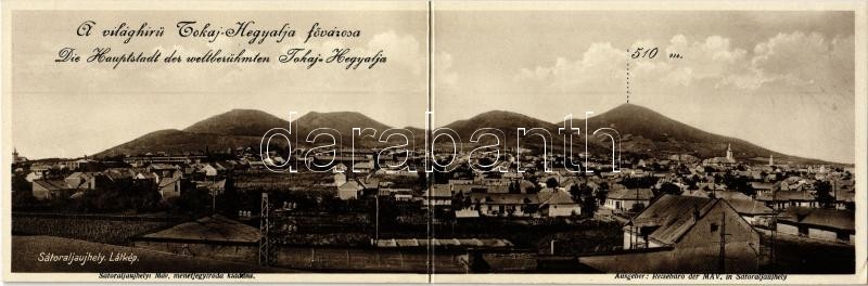 Beschreibung: Sátoraljaújhely, A világhírű Tokaj-Hegyalja fővárosa. MÁV menetjegyiroda kiadása, kinyitható panorámalap / folding panoramacard