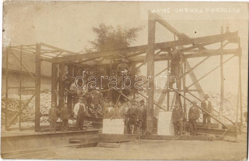 Beschreibung: Selyp (Lőrinci), vasszerkezet munkásokkal (készült a Selypi Cukorgyár gépműhelyében). Patocska Ferenc photo
