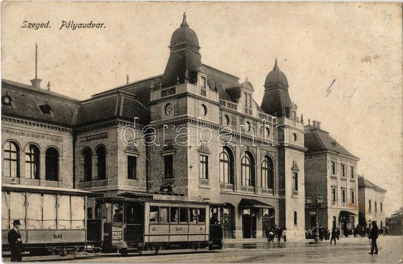 Szeged, pályaudvar, vasútállomás, Rókus-Széchenyi tér villamos Glöckne... https://www.darabanth.com/de/32-Gross-Auktion/32.1/Ansichtskarten/Ungarn~13725/Szeged-palyaudvar-vasutallomas-Rokus-Szechenyi-ter-villamos-Glockner-reklamjaval-Rb~II2035311