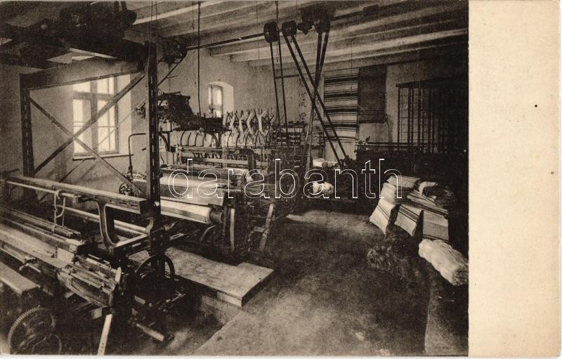 Beschreibung: Szentes, Vrana Lajos villanyerőre berendezett műszövő telepe és saját kiadása, belső. Széchenyi utca 63.