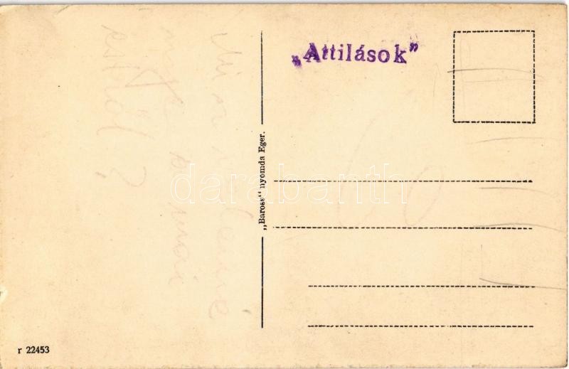 Beschreibung: Szilvásvárad, utca, Hangya üzlet, Magyar Királyi dohány és marhasó áruda + "Attilások" bélyegző