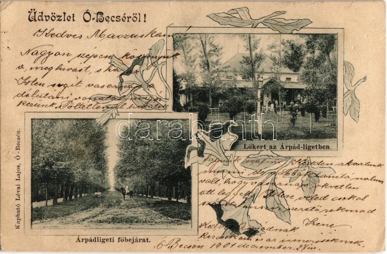 1901 Óbecse, Stari Becej; Árpád-ligeti főbejárat, Fő utca, protestáns templom, Lőkert / park, shooting hall, church, main street. Art Nouveau, floral (EK)