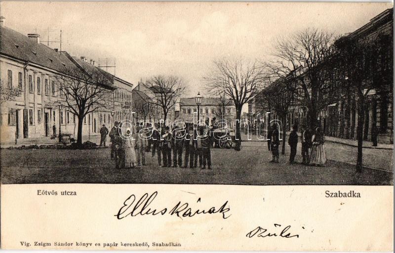 Beschreibung: 1904 Szabadka, Subotica; Eötvös utca. Vig. Zsigm. Sándor kiadása / street