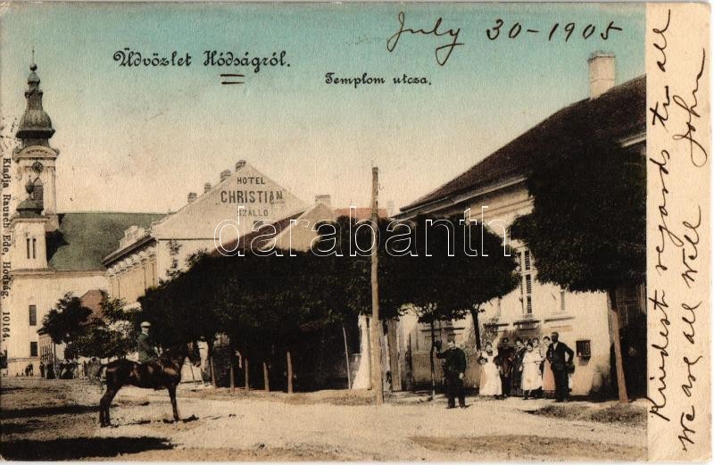 1905 Hódság, Odzaci; Templom utca, Christian szálló. Rausch Ede kiadás... https://www.darabanth.com/de/32-Gross-Auktion/32.1/Ansichtskarten/Vojvodina~13730/1905-Hodsag-Odzaci-Templom-utca-Christian-szallo-Rausch-Ede-kiadasa-street-view-with-chur~II1944015