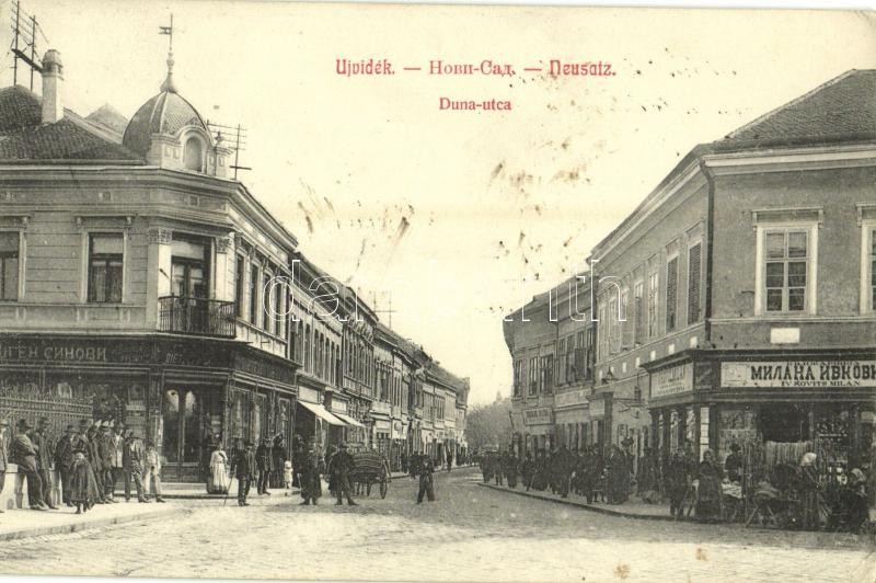 1908 Újvidék, Novi Sad; Duna utca, Ivkovits Milán és Dietzger fiai üzl... https://www.darabanth.com/de/32-Gross-Auktion/32.1/Ansichtskarten/Vojvodina~13730/1908-Ujvidek-Novi-Sad-Duna-utca-Ivkovits-Milan-es-Dietzger-fiai-uzlete-piac-Klein-Vilmos-b~II2035844