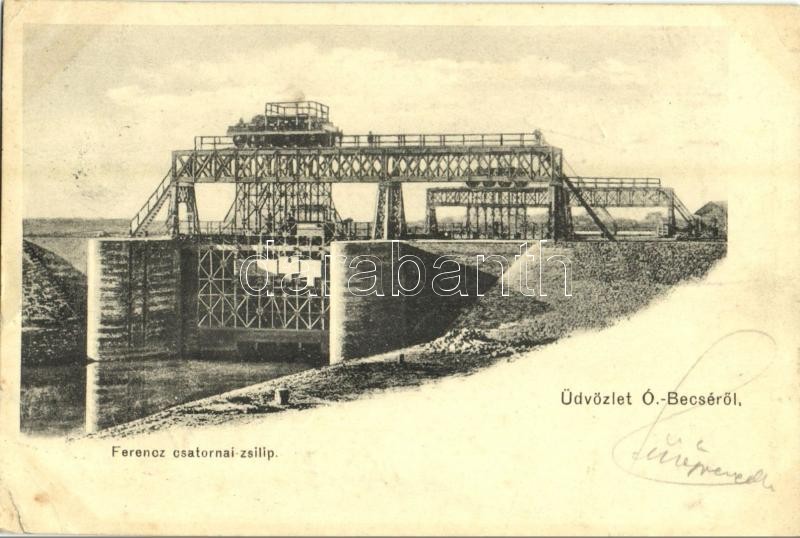 1913 Óbecse, Stari Becej; Ferenc csatorna zsilip / channel lock (EK) https://www.darabanth.com/de/32-Gross-Auktion/32.1/Ansichtskarten/Vojvodina~13730/1913-Obecse-Stari-Becej-Ferenc-csatorna-zsilip-channel-lock-EK~II2025690