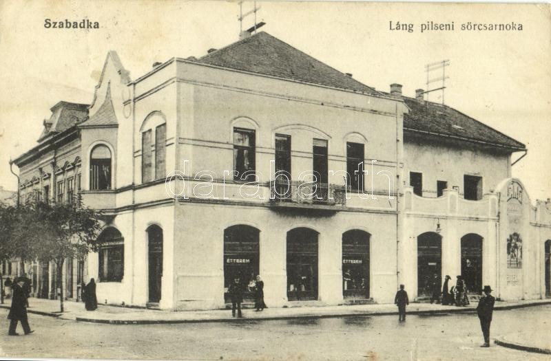 1913 Szabadka, Subotica; Láng pilseni sörcsarnoka és étterme / restaur... https://www.darabanth.com/de/32-Gross-Auktion/32.1/Ansichtskarten/Vojvodina~13730/1913-Szabadka-Subotica-Lang-pilseni-sorcsarnoka-es-etterme-restaurant-and-beer-hall~II2043865