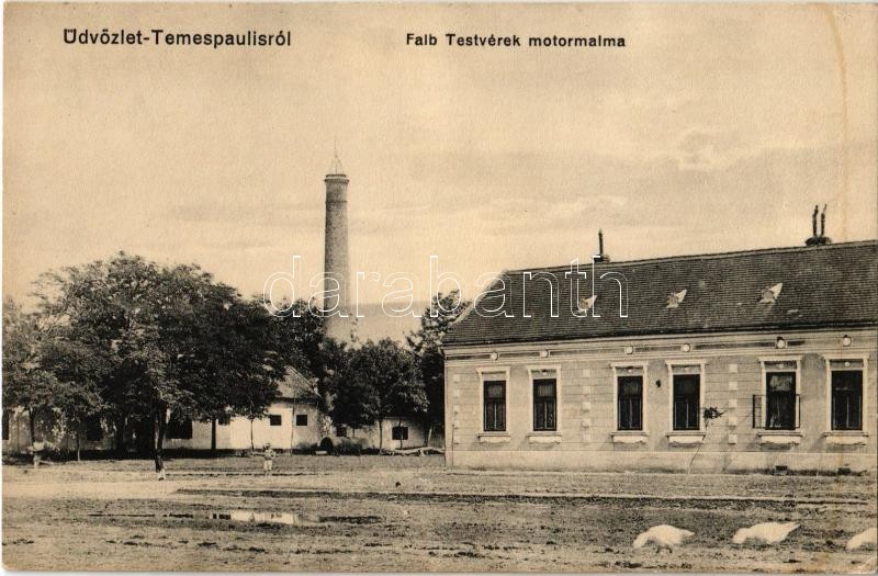 Temespaulis, Pavlis; Falb Testvérek motormalma / motor mill https://www.darabanth.com/de/32-Gross-Auktion/32.1/Ansichtskarten/Vojvodina~13730/Temespaulis-Pavlis-Falb-Testverek-motormalma-motor-mill~II2036615