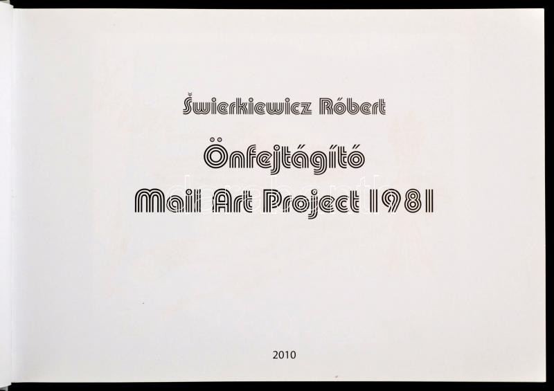 Gyetvai Ágnes: Šwierkiewicz Róbert : Önfejtágító mail-art project. 1981. Bp.,2010, Saranszki Art Solutions. Magyar, angol és francia nyelven. Kiadói kartonált papírkötés. A művész, Šwierkiewicz Róbert (1942-2019) festőművész, grafikus, iparművész, keramikus által Farkasházy Tivadar (1945- ) humorista, újságíró részére dedikált példány./ Ágnes Gyetvai: Robert Šwierkiewicz: Mail Art Project. 1981. Bp., 2010, Saranszki Art Solutions. Paperbinding. In Hungarian, English and French language. Signed by the artist.