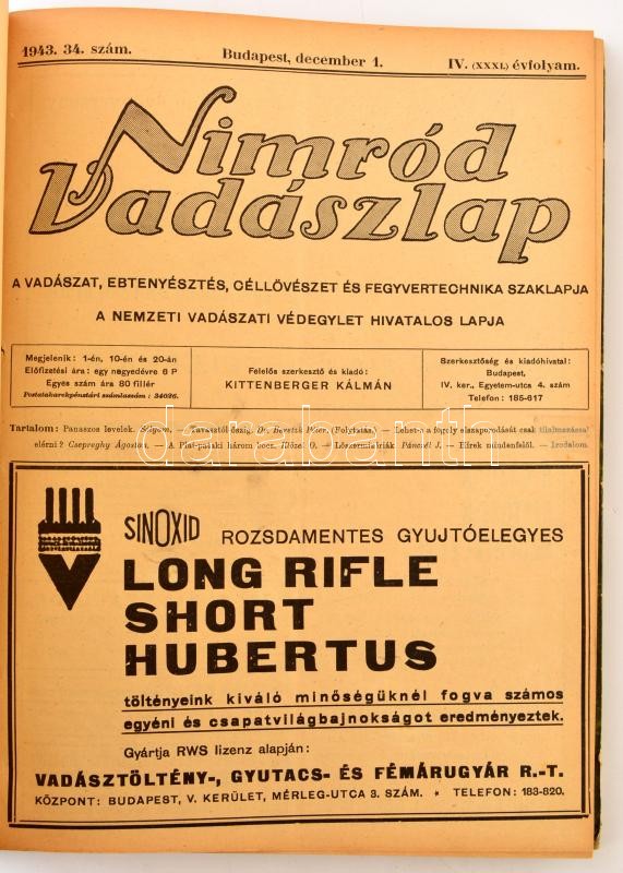 1943-48 A Vadászújság 21 száma és a Nimród vadászlap 18 száma bekötve,... https://www.darabanth.com/de/32-Gross-Auktion/32.1/Bucher/Bucher-Jagd~13382/1943-48-A-Vadaszujsag-21-szama-es-a-Nimrod-vadaszlap-18-szama-bekotve-ket-kotetben-Nem-~II2046353