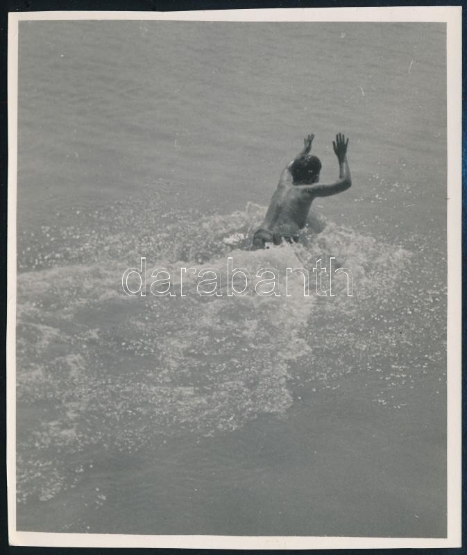 Beschreibung: 1936. július Verőce, Kinszki Imre (1901-1945) budapesti fotóművész hagyatékából, pecséttel jelzett, vintage fotóművészeti alkotás, 14x11,7 cm