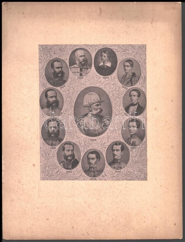cca 1900 I. Ferenc József császár különböző életkorában, kartonra kasírozott fotó, 19×14 cm / Portraits of Emperor Franz Joseph, photograph composition on cardboard, 19×14 cm