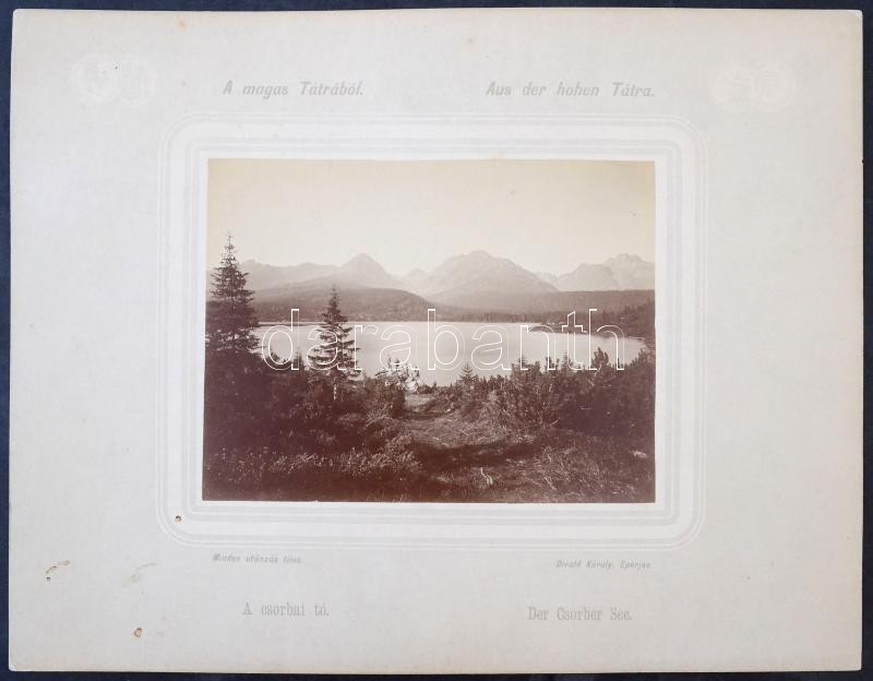 Beschreibung: cca 1900 Magas-Tátra, Csorbai-tó, fotó kartonon, Eperjes, Divald Károly műintézetéből, magyar és német nyelven, 16x12 cm