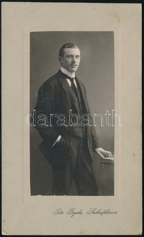 cca 1910-1920 (szentgyörgyvölgyi) Magay Kálmán (1886-1943) (budapesti) gyógyszerész portréja, fotó kartonon, Székesfehérvár, Pete Gyula műterméből, 14x7 cm.
