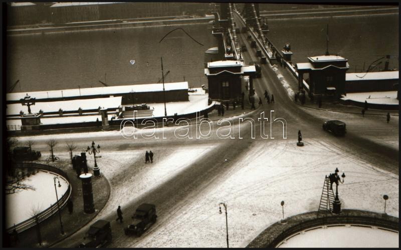 Beschreibung: cca 1930 Kinszki Imre (1901-1945) budapesti fotóművész hagyatékából vintage negatív felvétel (Lánchíd, budai hídfő), 4,5x6,5 cm
