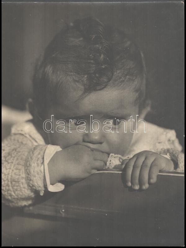 cca 1930 Kinszki Imre (1901-1945) budapesti fotóművész jelzés nélküli, vintage fényképe gyermekéről, Kinszki Gáborkáról, a szerző hagyatékából, 39,5x29,5 cm
