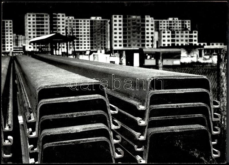 cca 1977 Gebhardt György (1910-1993) budapesti fotóművész hagyatékából feliratozott, vintage fotóművészeti alkotás (Acél és beton), kasírozva, 28x39 cm