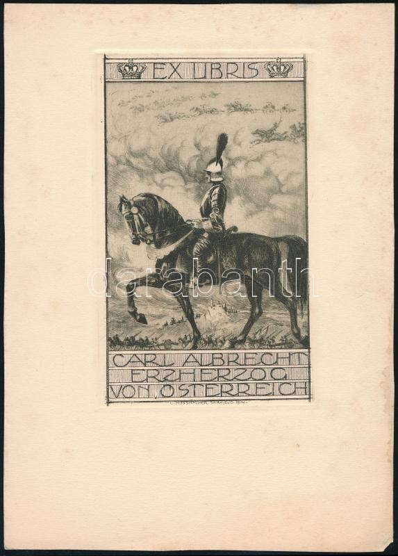 Beschreibung: Ludwig Hesshaimer (1872-1956): Ex libris Carl Albtecht Erzherzog von Osterreich. Rézkarc, papír, jelzett a karcon, 15×9 cm