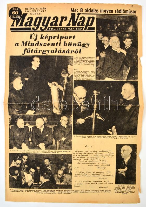 1949 A Magyar Nap III. évfolyamának 30. száma, címlapon a Mindszenty-ü... https://www.darabanth.com/de/32-Gross-Auktion/32.1/Kunst-Dokumente-andere-Sammelgebiete/Drucksachen~13371/1949-A-Magyar-Nap-III-evfolyamanak-30-szama-cimlapon-a-Mindszenty-ugy-kepriportjaval~II2019666