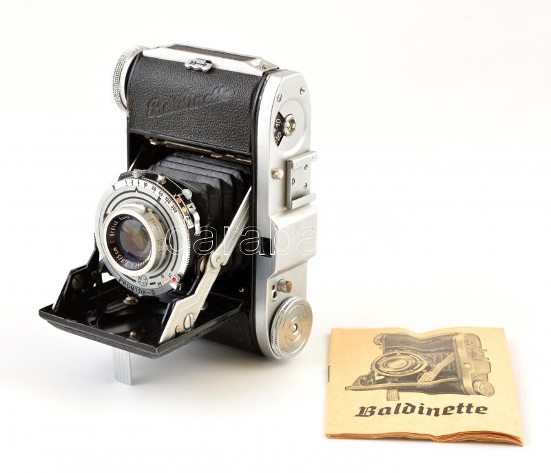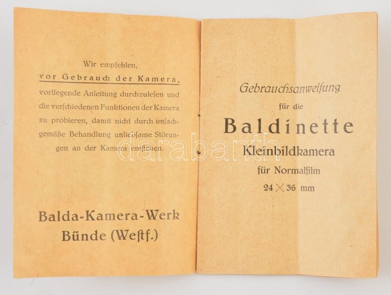 cca 1950 Balda Baldinette kisfilmes fényképezőgép, Enna Werk Haponar 50mm f/2.9 objektívvel, működőképes, szép állapotban, eredeti leírással / Vintage German folding camera in good, working condition with original manual