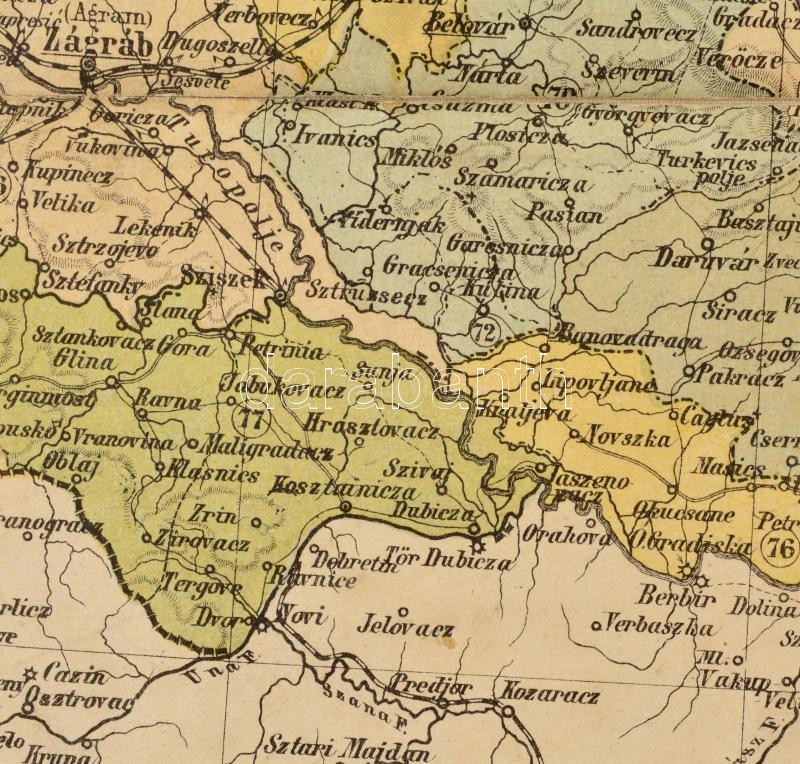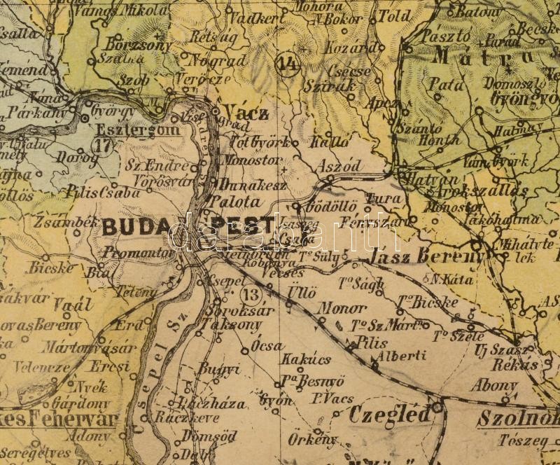 1882 A magyar Szent Korona országai. Magyarország, Horvát--tótország és a katonai őrvidék térképe, Bp., Eggenberger, vászonra kasírozva, kissé foltos, 55×76 cm