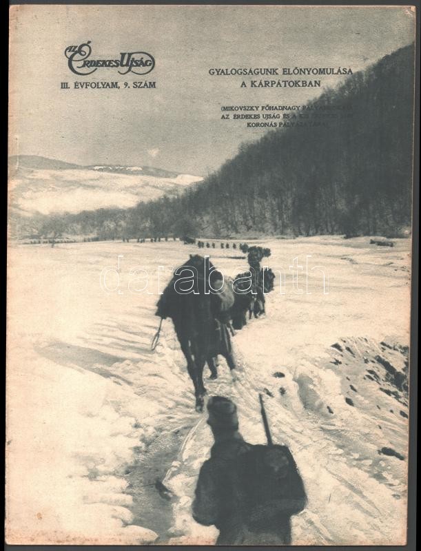 1915. február 28. Az Érdekes Újság III. évfolyamának 9. száma, benne több katonai fotó az I. vh. szereplőiről, eseményeiről, fegyverekről, politikusokról, stb., + benne egy kép folyóra telepített hajómalomról, 40p