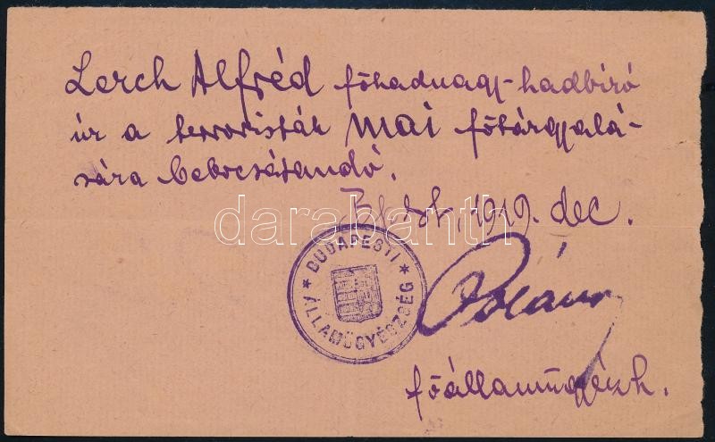 1919 Kézzel írt államügyészségi belépési engedély a Lenin-fiúk tárgyal... https://www.darabanth.com/de/32-Gross-Auktion/32.1/Kunst-Dokumente-andere-Sammelgebiete/Militaria~13366/1919-Kezzel-irt-allamugyeszsegi-belepesi-engedely-a-Lenin-fiuk-targyalasara-fohadnagy~II2044508