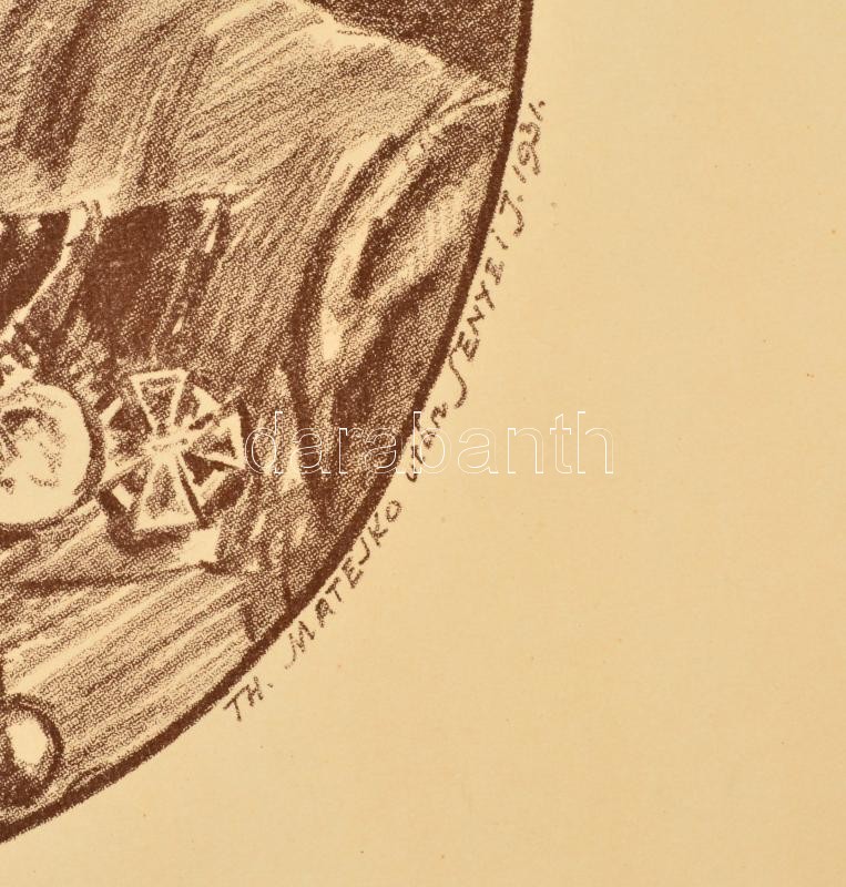 1931 Báró Cumin Artúr (1889-1952) m. kir. honvéd százados, későbbi ezredes, a Mária Terézia Rend lovagkeresztjének tulajdonosáról készített litografált nagyméretű emléklap, plakát, az 1916-os zarkowi harcokban tett bátorsága emlékére kiadva, 46×31 cm