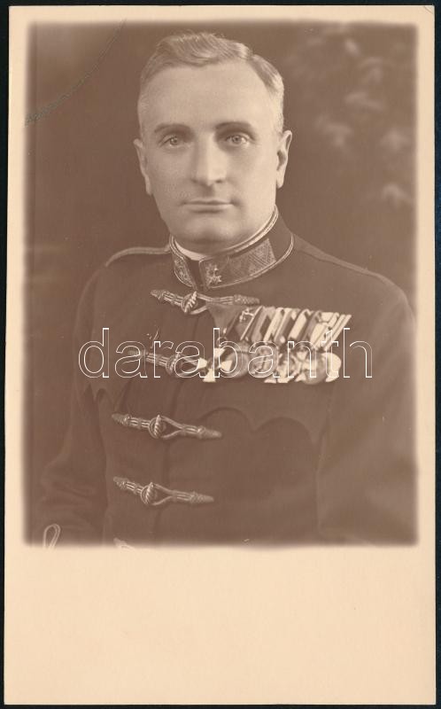 1938 Bp., Molnár Aladár magyar királyi alezredesnek szóló érdemrend adományozó levél, rajta Rőder Vilmos (1881-1969) honvédelmi miniszter aláírásával, valamint Molnár Aladár képével, 13×8 cm
