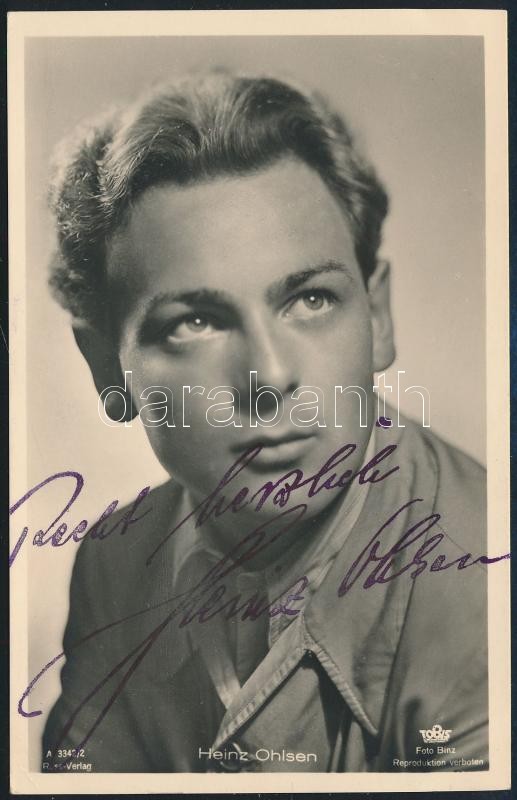 Heinz Ohlsen német színész aláírt fotólap / Autograph signed photo pos... https://www.darabanth.com/de/32-Gross-Auktion/32.1/Kunst-Dokumente-andere-Sammelgebiete/Signatur~13367/Heinz-Ohlsen-nemet-szinesz-alairt-fotolap-Autograph-signed-photo-postcard~II2044952