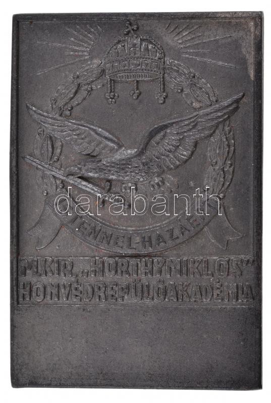Beschreibung: ~1942. "M. Kir. Horthy Miklós Honvéd Repülő Akadémia" fém emlékplakett (46,68g/40x60mm) T:1- /