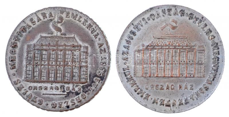 1865. "Emlékül az 1865. évi országgyűlés megnyitására / Emlékül az 1865 évi országgyűlés megnyitására Pesten - Éljen a király!" ezüstözött Br emlékérem (27,55g/40mm) + "Emlékül az 1865. évi országgyűlés megnyitására - Éljen a király / Éljen a haza - Es lebe das Vaterland" kétoldalas Br emlékérem (20,31g/39,5mm) T:1-,2 kopott ezüstözés