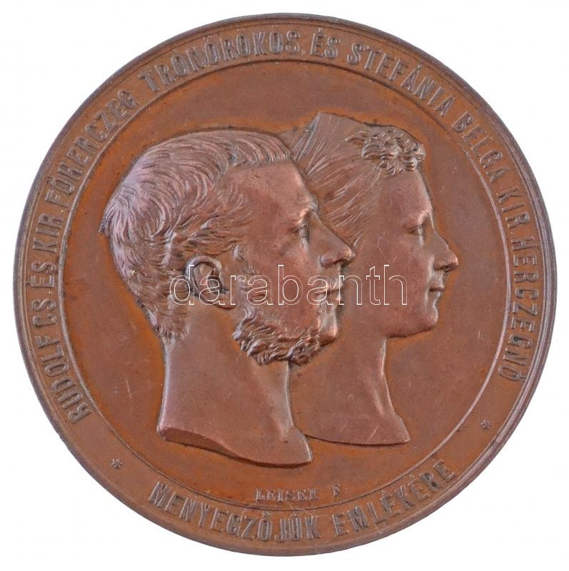 1881. "RUDOLF CS. ÉS KIR. FŐHERCZEG TRÓNÖRÖKÖS ÉS STEFÁNIA BELGA KIR. HERCZEGNŐ - MENYEGZŐJÜK EMLÉKÉRE / EZREK AJKÁN EGY HANG EGY ÉRZELEM - BUDAPEST FŐVÁROS KÖZÖNSÉGE" kétoldalas Br emlékérem. Szign.: Leisek (110,49g/65mm) T:2 R! / Hungary 1881. "RUDOLF CS. ÉS KIR. FŐHERCZEG TRÓNÖRÖKÖS ÉS STEFÁNIA BELGA KIR. HERCZEGNŐ - MENYEGZŐJÜK EMLÉKÉRE / EZREK AJKÁN EGY HANG EGY ÉRZELEM - BUDAPEST FŐVÁROS KÖZÖNSÉGE" double-sided commemorative Br medallion (110,49g/65mm) C:XF R!