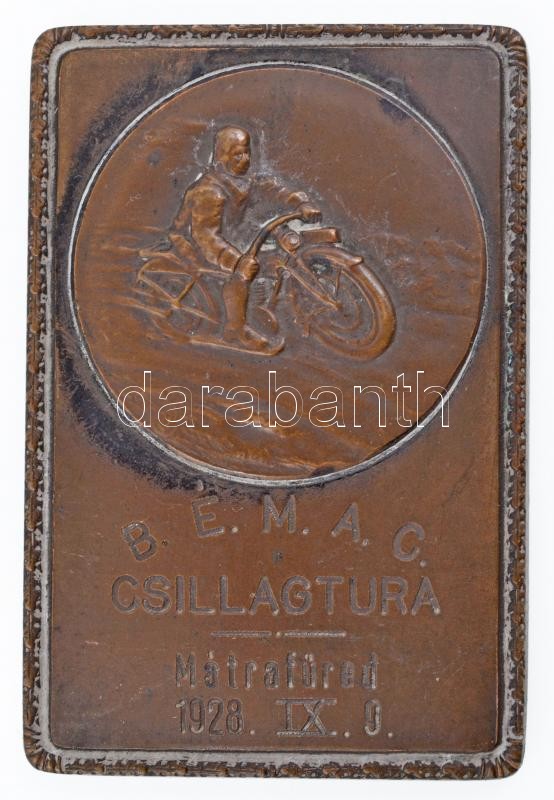 1928. "B.É.M.A.C. Csillagtúra - Mátrafüred 1928. IX. 9." egy... https://www.darabanth.com/de/32-Gross-Auktion/32.1/Numismatik/Ungarische-Gedenkmunzen-Plaketten~13436/1928-BEMAC-Csillagtura-Matrafured-1928-IX-9-egyoldalas-motoros-Br-plakett-61x41mm~II2045673