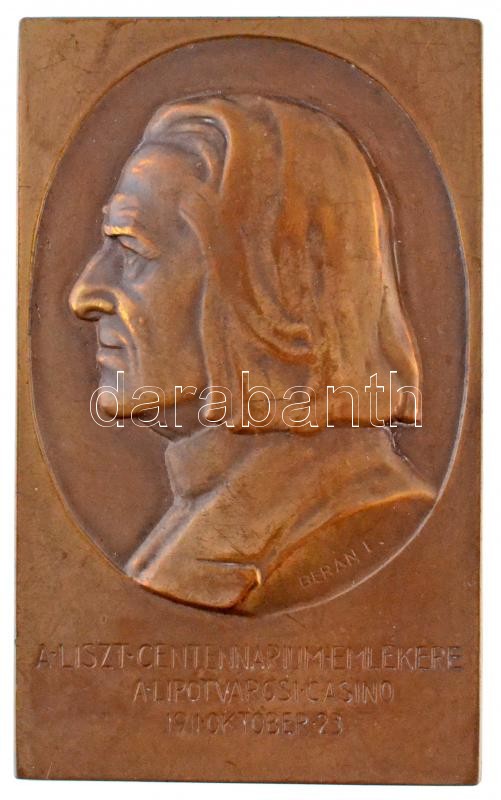 Berán Lajos (1882-1943) 1911. "A Liszt Centennárium emlékére a Lipótvárosi Casino 1911. október 23." Br emlékplakett (113,66g/50x80mm) T:2 /