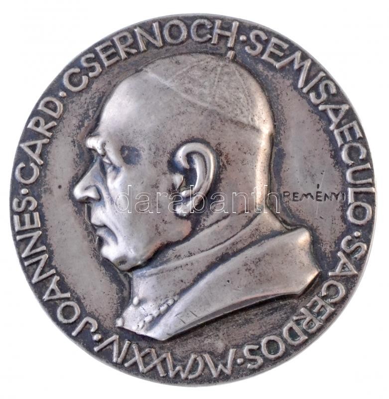 Reményi József (1887-1977) 1924. "JOANNES CARD. CSERNOCH SEMISAECULO SACREDOS MCMXXIV / TUA LUCE DIRIGE" jelzetlen, öntött Ag emlékérem (180,08g/72mm) T:1- RR! / Hungary 1924. "JOANNES CARD. CSERNOCH SEMISAECULO SACREDOS MCMXXIV / TUA LUCE DIRIGE" Ag commemorative medallion without hallmark (180,08g/72mm) C:AU RR!