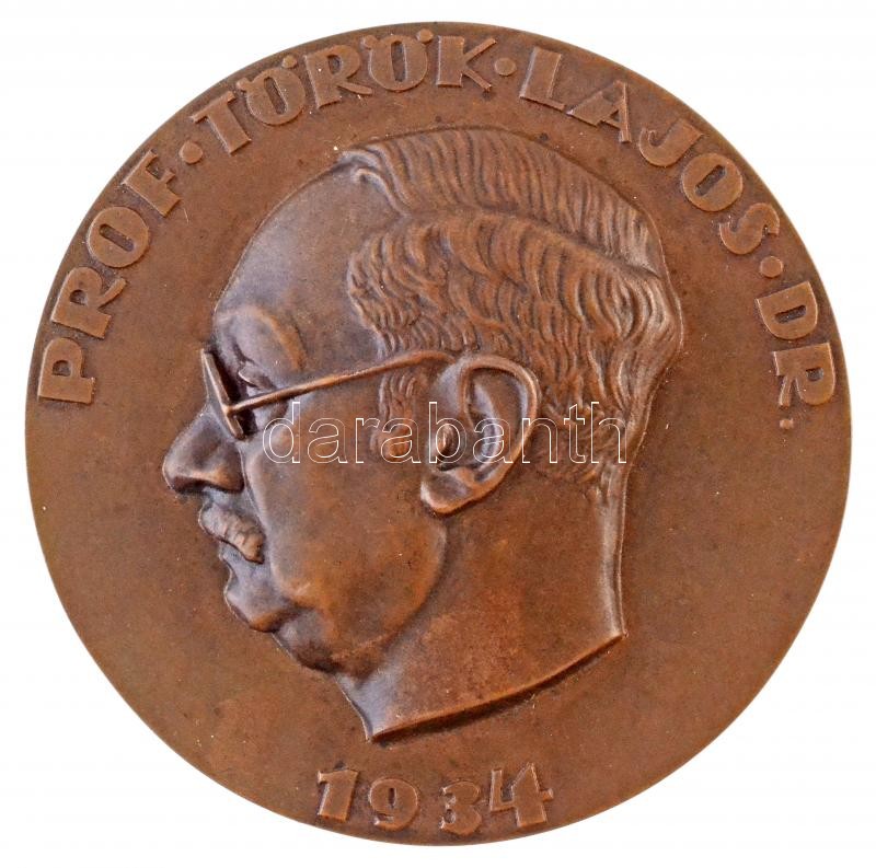 Reményi József (1887-1977) 1934. "Prof. Török Lajos Dr." kétoldalas Br plakett (354,70g/95mm) T:1- / Hungary 1934. "Prof. Török Lajos Dr." double-sided Br plaque. Sign.: József Reményi (354,70g/95mm) C:AU