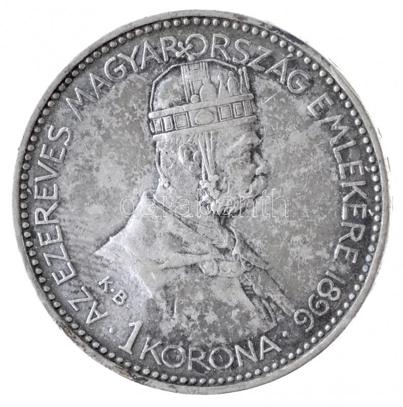 Hungary 1896KB 1 Korona Ag "Millenium" in original, brown case C:AU,XF patina Adamo K5.2