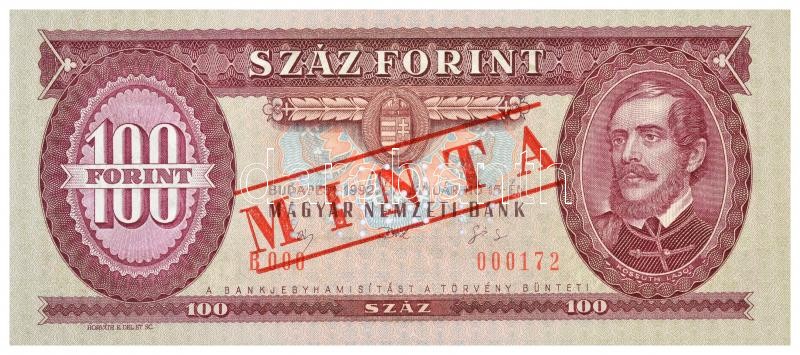 1992. 100Ft piros "MINTA" felülnyomással és perforációval &q... https://www.darabanth.com/de/32-Gross-Auktion/32.1/Numismatik/Ungarische-und-Auslandische-Banknoten~13434/1992-100Ft-piros-MINTA-felulnyomassal-es-perforacioval-B000-000172-TI--Hungary-1992-1~II2009073