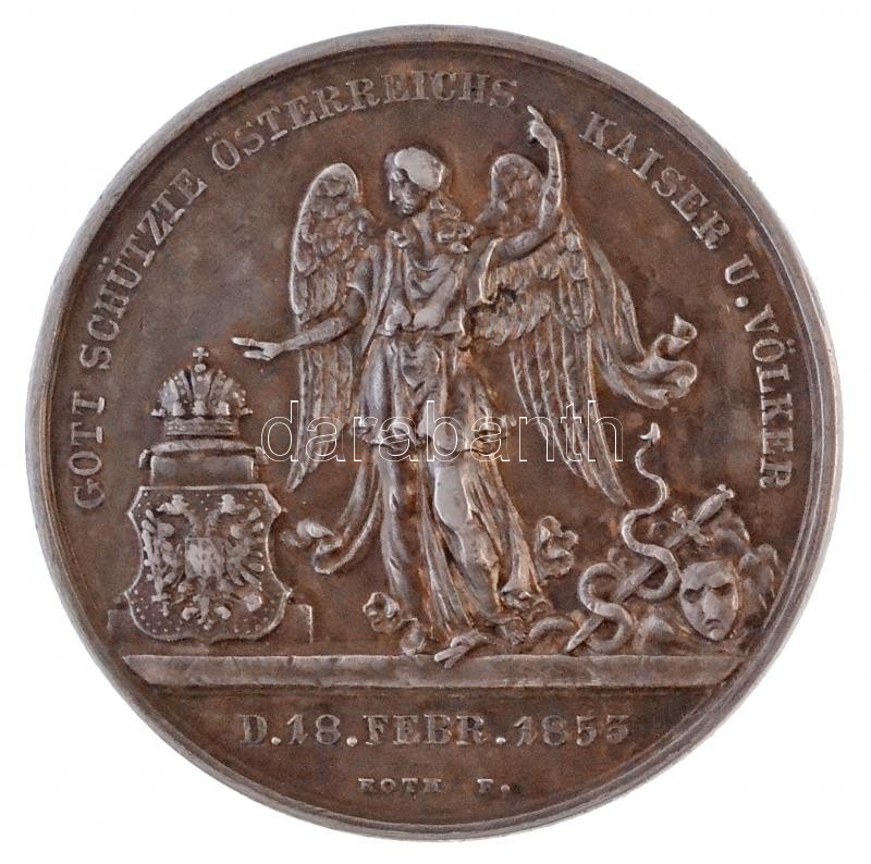 Ausztria 1853. "Ferenc József Ausztria császára" Br emlékérem a Császár elleni sikertelen merénylet emlékére. "FRANZ JOSPEH I.V.G.G. KAISER VON OESTERREICH / GOTT SCHÜTZTE ÖSTERREICHS KAISER UND VÖLKER D. 18. FEBR. 1853." Szign.: Roth F. (21,87g/38mm) T:2 / Austria 1853. "Franz Joseph Emperor of Austria" Br commemorative medallion about the failed assassination attempt on the emperor. Sign.: Roth F. (21,87g/38mm) C:XF Hauser: 285